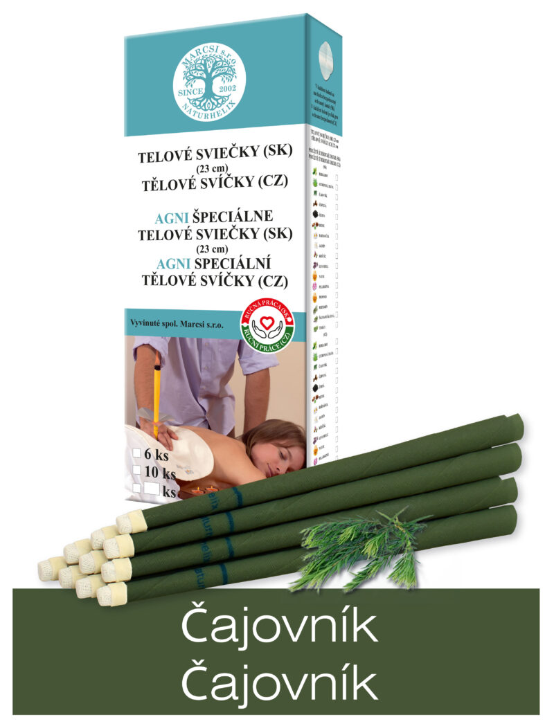 Telová sviečka s éterickym olejom Čajovník (Melaleuca Altemifolia) TEA TREE. Čajovník – Tea Tree je číry alebo svetlo zlatý esenciálny olej, ktorý sa vyznačuje čerstvou a prenikavou vôňou. Získava sa z listov stromu, ktorému sa v angličtine hovorí T-tree, čo je voľne preložené ako “strom v tvare T”.